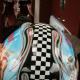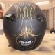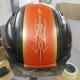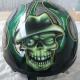 Customising motorcycle helmets can be for corporate identity for racing helmets or just for the pleasure of having a customised helmet. Motorbike helmets can be painted using different customising methods, including: pinstripe, airbrush & metal flake.